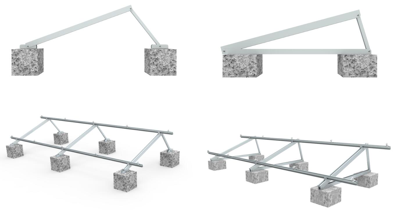 ⊙一個三腳架將適合多種不同的平面混凝土屋頂光伏裝置,專業(yè)設(shè)計,終止使用鋁型材的未來臨時場地制作結(jié)構(gòu)。