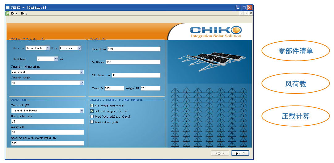 晨科開發的基于Windows的軟件包含用于不同風區和光伏系統配置的數據庫,以協助工程師計算每個單獨的項目