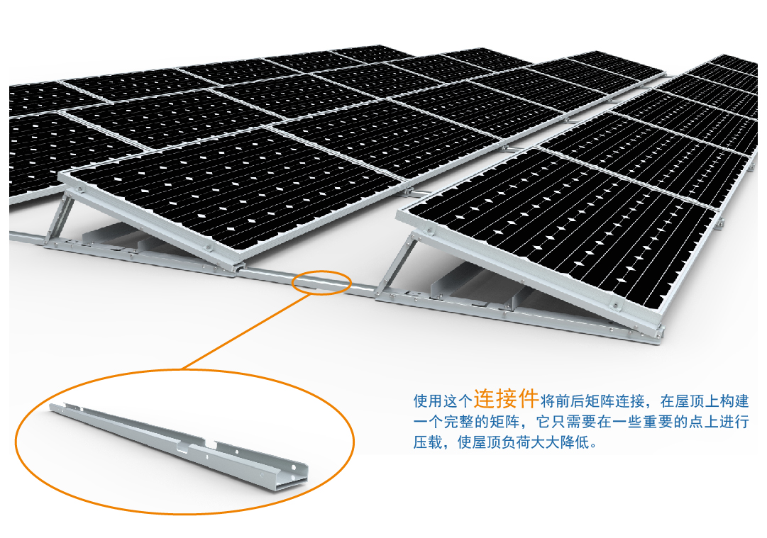 晨科壓載I-2系統由擠壓鋁型材制成,為幾乎所有的平屋頂太陽能電站建設提供了一個輕量級的解決方案。 該系統的設計只需一個工具,只需少量元件便可快速固定。 可以為南面屋頂,南北屋頂和東西向屋頂建造太陽能電池板的各種配置,以實現優質的解決方案。
