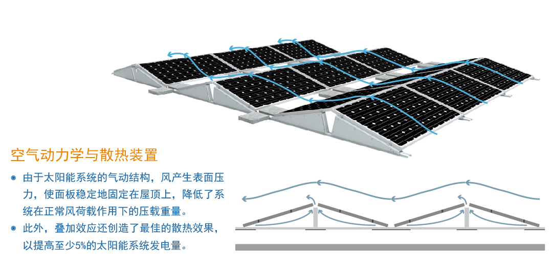 ⊙擋風板可選配,以降低太陽能組件的溫度,提高太陽能系統的產量。